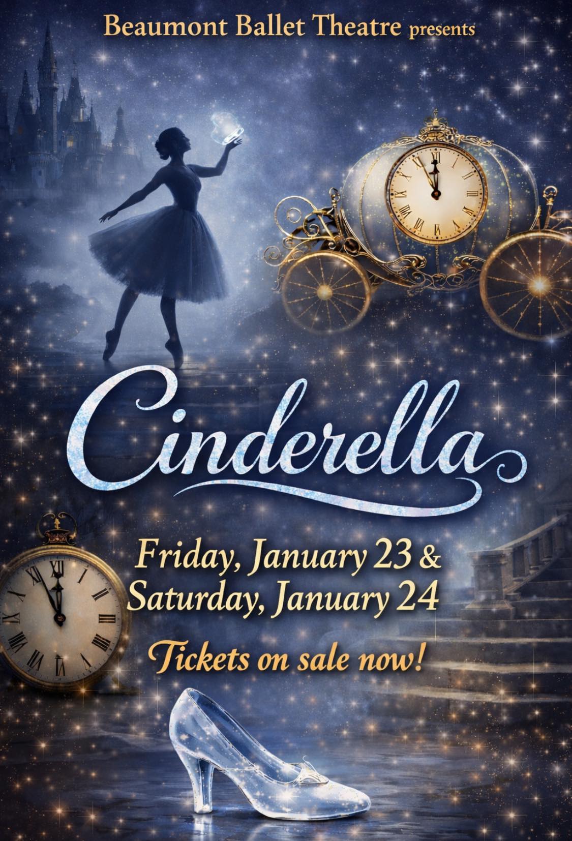 Join us for another season of magic! The Beaumont ballet theatre dancers will be at the Julie Roger’s theatre performing our annual production of Cinderella.